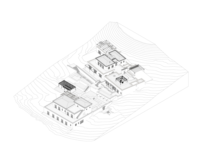 Located in a highly sought-after area near Porto Heli, this property includes a newly acquired section that needed seamless integration with the existing estate. Our role was to develop a masterplan for the main and secondary routes for vehicles, golf carts, and pedestrians, carefully arranged to preserve the privacy of family members. These two structures, originally built in the 90s, feature a classic layout but lack distinct architectural character.